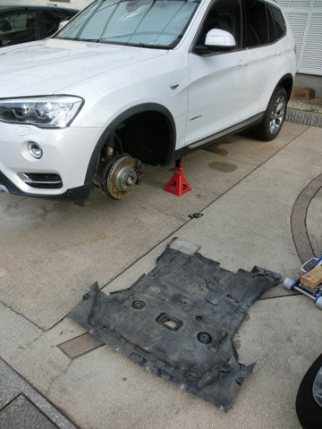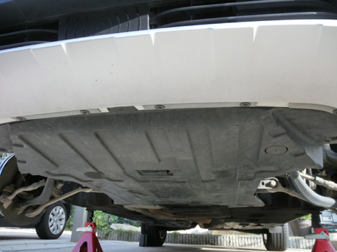 写真2 アンダーカバーこのアンダーカバーは、多くのネジやプラスチックリベットで取り付けられているので、取り外すのが面倒だ。写真3に取り外したアンダーカバーを示す。