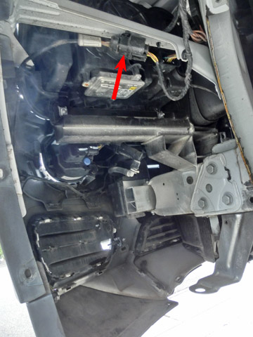 写真17 車体から外したコネクタ右側のフォグランプのコネクタも同様にして外しておく。