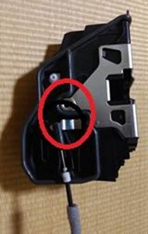 正常なドアロッアクチュエータで、この動作をすると「ラッチは開錠しない」ということが分かりました。この「ドアハンドルのケーブルを開錠方向に引っ張った状態」というのは、通常あり得ない状況です。そしてこの引っ張りを開放すると正常にラッチが開錠します。ここからは推測ですが、ドアロッアクチュエータのドアハンドルケーブルが何等かの原因で、常時引っ張られた状態であるのではないかと考えました。