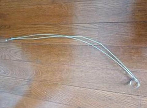 画像13:治具を作成。自転車のワイヤーワイヤーの先に、丸リングを結線