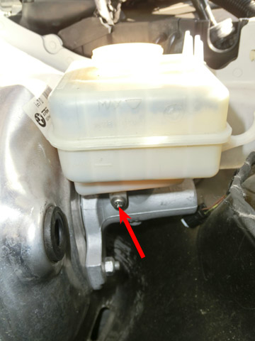 あとは、写真14のように新しいタンクをマスターシリンダーに押し込み、固定ネジを取り付ければいい。
