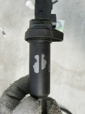 写真3 コネクタを外したところそして、イグニッションコイルをゆっくりと引き抜く。写真4に引き抜いたイグニッションコイルを示す。